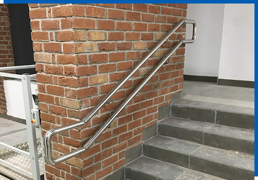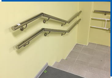 Они крепятся на специальные кронштейны, могут состоять из одного или двух поручней, с травмобезопасным окончанием или без такового. Самый распространенный вариант - поручень высотой 900 мм и диаметром 38 мм, но мы также монтируем особо прочные поручни с увеличенным диаметром в 42 или 51 мм, и поручни, удобные для детей, на высоте 500 и 700 мм.