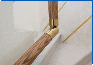 Можно установить деревянный поручень из дуба или бука. В целях экономии дерево можно заменить на пластик, имитирующий дерево или одноцветный. Пластиковый поручень также применяется для радиусных перил. Для стекла, кроме вышеперечисленного, применяется еще и П-образная планка.